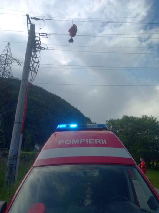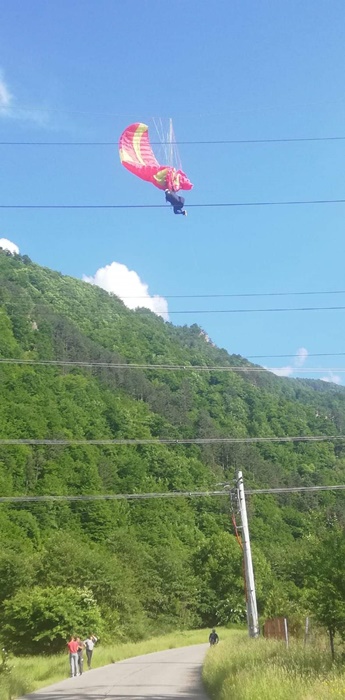 Totul s-a intamplat in zona Brazi din judetul Hunedoara, marti. Un tanar care zbura cu parapanta a fost impins de curentii de aer chiar in niste fire de curent ce trec prin apropierea localitatii.