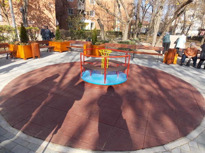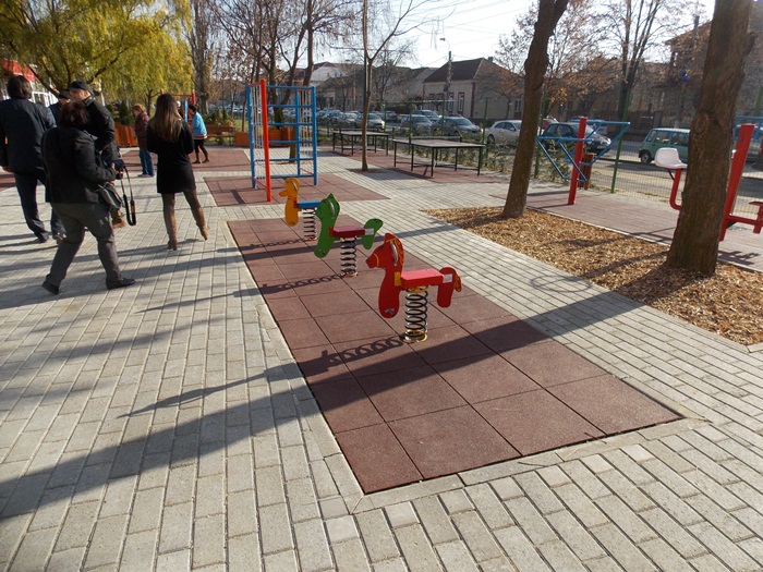 Locul de joaca a fost imprejmuit cu gard, iar pe langa aceste dotari au fost puse doua tobogane, un leagan tip “cuib de pasare”, o cumpana, un leagan tip “rotativa”, un echipament de joaca “X-0”, trei figurine pe arc, un sistem de catarat, doua mese de ping-pong.