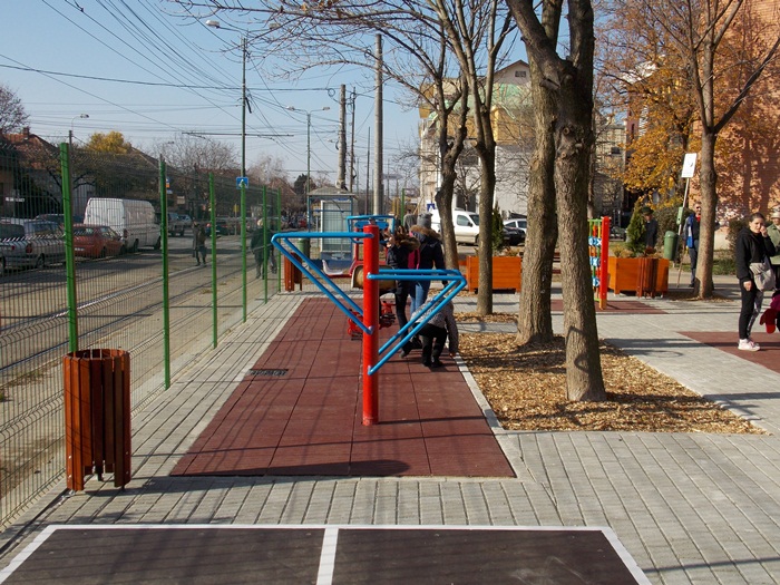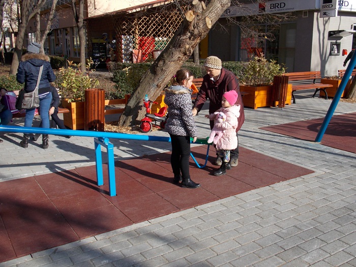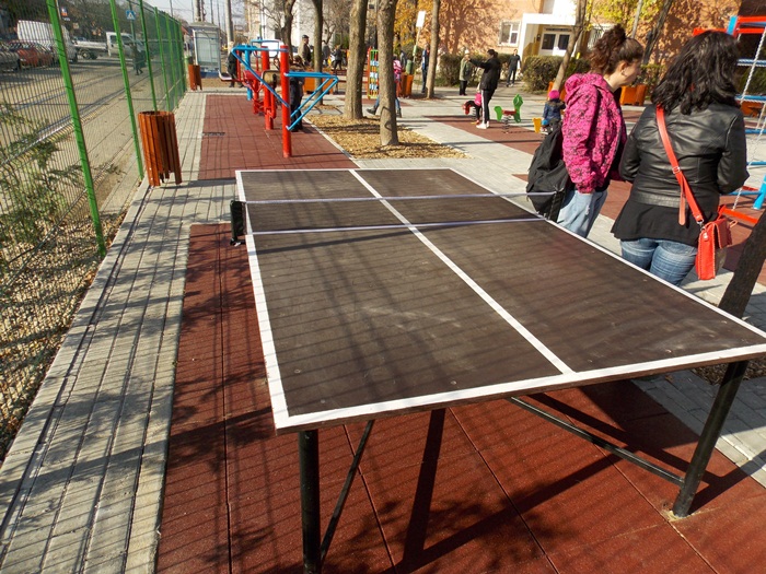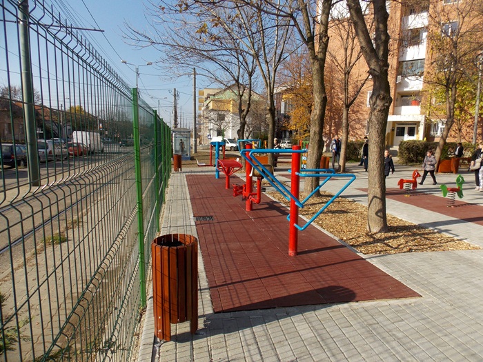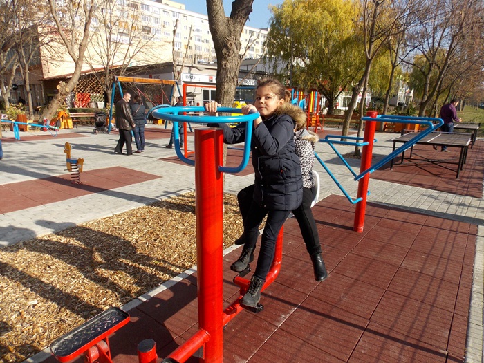 Echipamentele de joaca si de fitness care au fost montate in acest parculet pot fi folosite de copiii cu varste cuprinse intre 4 si 12 ani, in timp ce adultii pot juca tenis de masa pe mesele instalate.