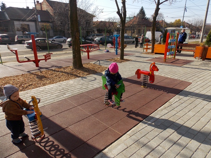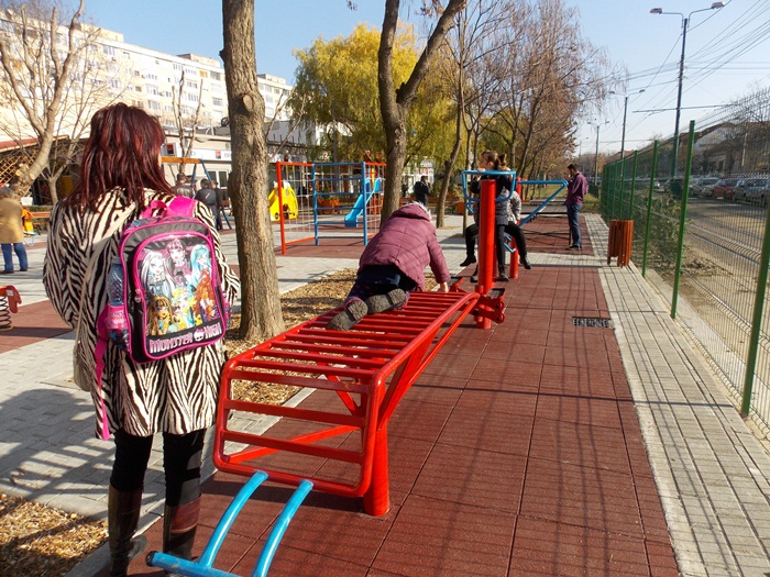 TIMISOARA. Un nou loc de joaca din Timisoara a fost reabilitat cu bani de la bugetul local. Micutii din zona Bogdanestilor au aparate de fitness, tobogane sau caluti pe care sa se joace, in timp ce parintii si bunicii ii pot supraveghea din vecinatate, in timp ce joaca un meci de ping pong.