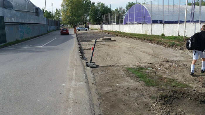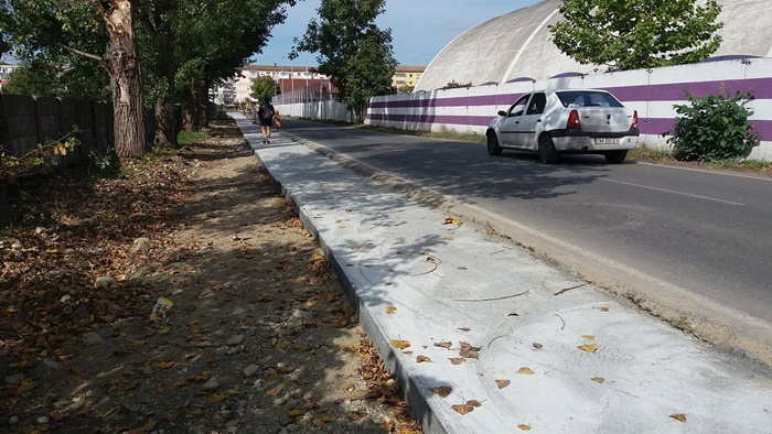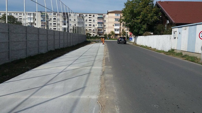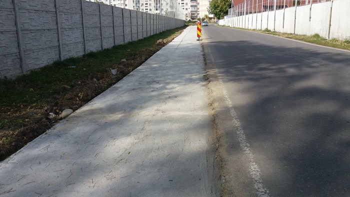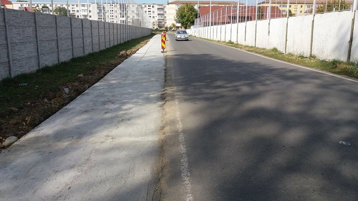 Se amenajeaza trotuar, pista de biciclete si o parcare.