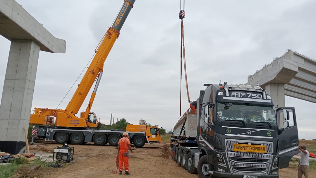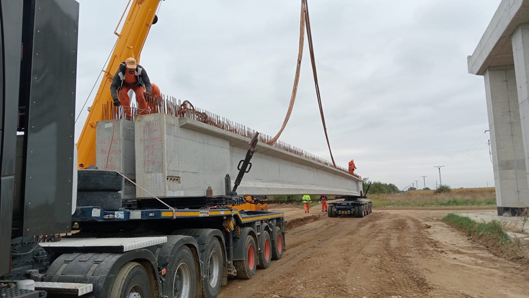TIMISOARA. Operatiune complexa in zilele urmatoare pe soseaua de Centura Sud de la Timisoara. Incepe instalarea grinzilor la pasajul peste calea ferata din zona localitatii Chisoda.