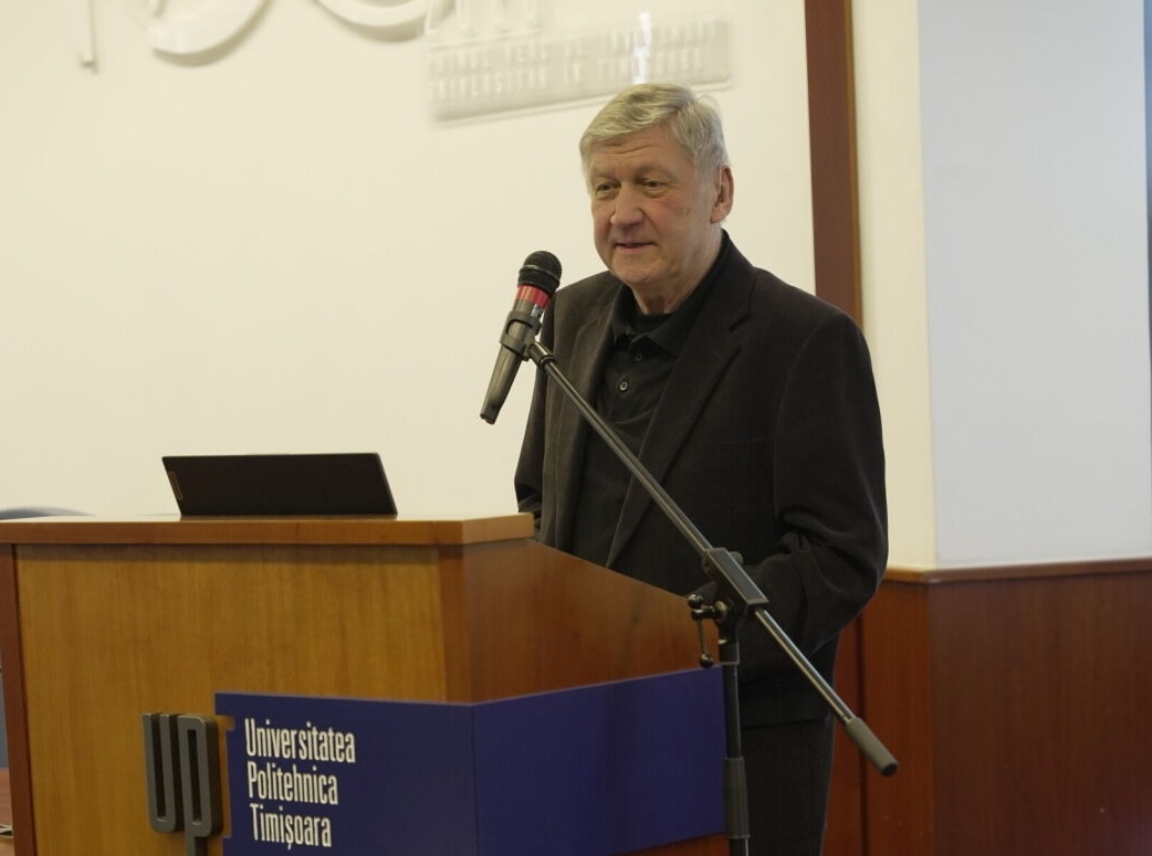 TIMISOARA. Centrul de Conferințe al Universității Politehnica Timișoara a găzduit miercuri, 24 aprilie 2024, conferința „Auf den Spuren der Deutschen im Banat – Aufbruch in die Moderne” (Pe urmele germanilor în Banat – Începuturile modernității), susținută de prof.univ.dr. Anton Sterbling, sociolog, scriitor și membru fondator al Grupului de Acțiune Banat. Evenimentul a fost organizat de Facultatea de Științe ale Comunicării din cadrul UPT, în colaborare cu Societatea Culturală Româno-Germană din Timișoara, sub egida căreia funcționează Centrul Cultural German.