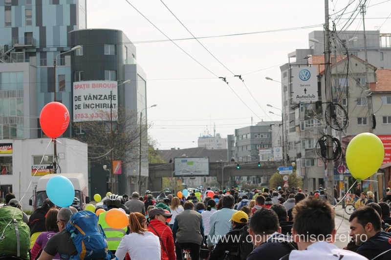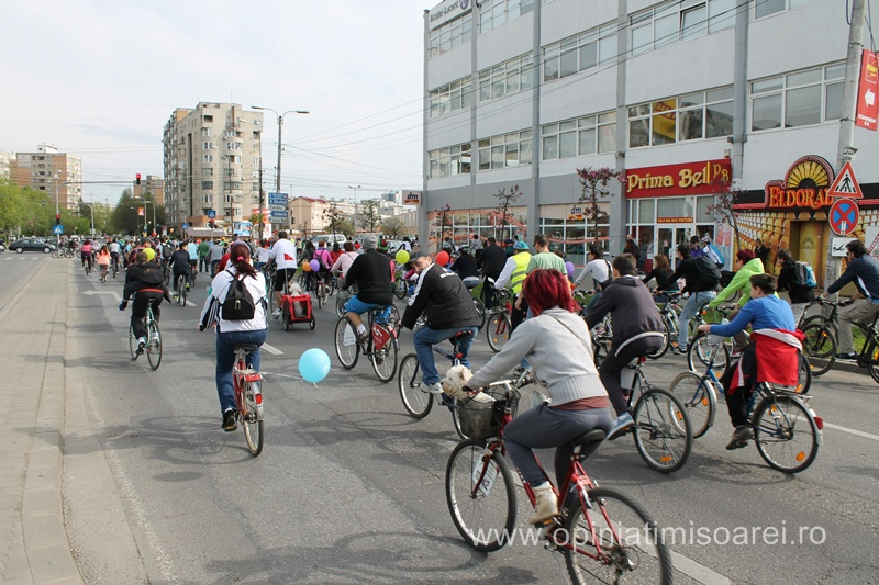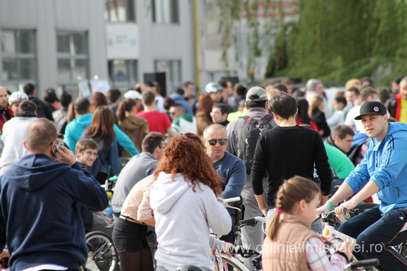 Incepand cu ora 10, biciclistii au inceput sa se adune la platforma Timco de pe Circumvalatiuni. Oameni de toate varstele, parinti cu copii, bunici cu nepoti, insotiti de prieteni sau chiar de catei, cu totii au venit cu zambetul pe buze si pofta de pedalare.