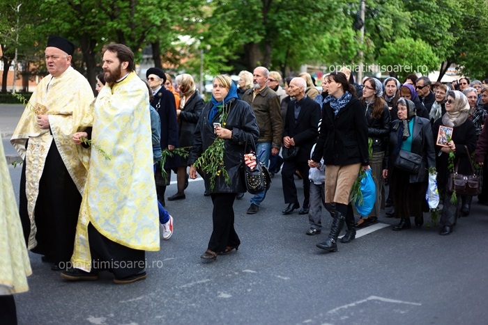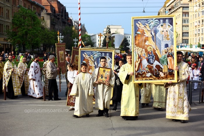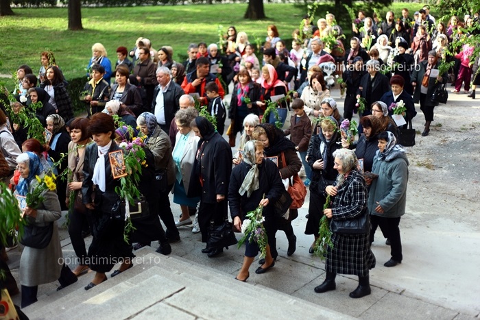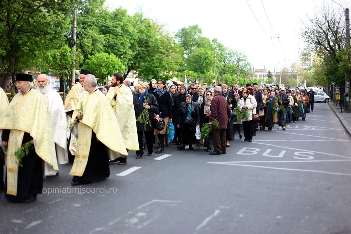 TIMISOARA. Sute de timisoreni au participat anul acesta la Pelerinajul de Florii organizat sambata in capitala Banatului. Credinciosii au purtat cu ei icoane, flori si ramuri de salcie, mergand in procesiune spre Catedrala Mitropolitana, unde au participat la slujba.