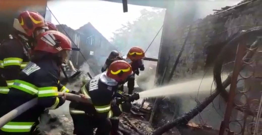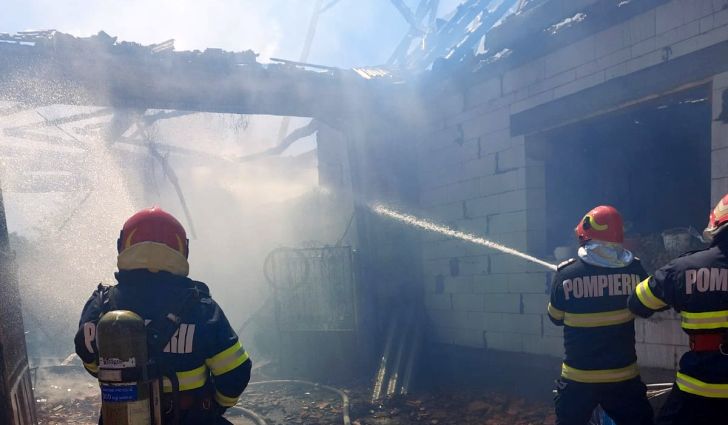 Pompierii au reusit sa opreasca extinderea flacarilor la alte doua case aflate in apropiere, dar si la un utilaj agricol aflat in curte.