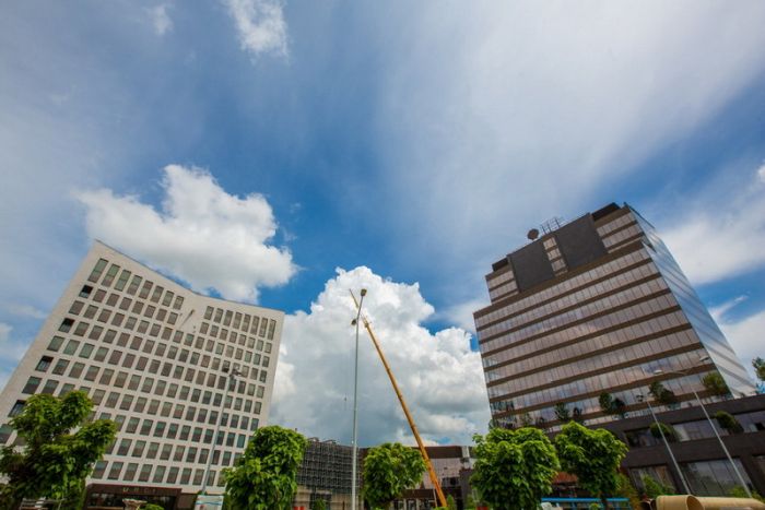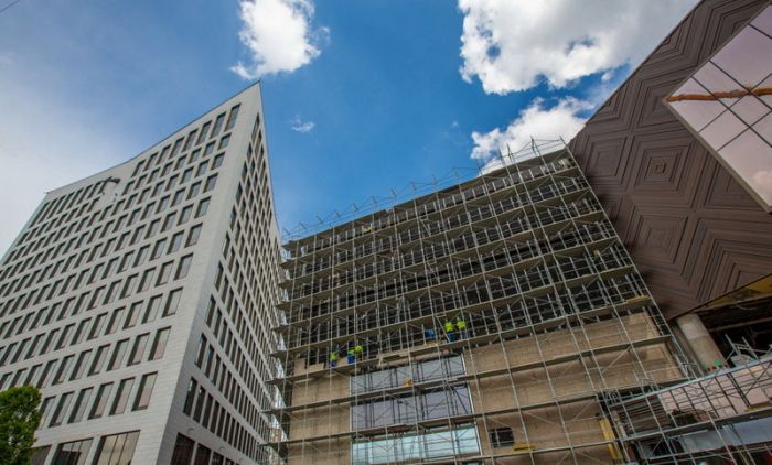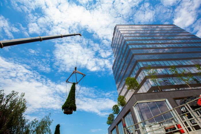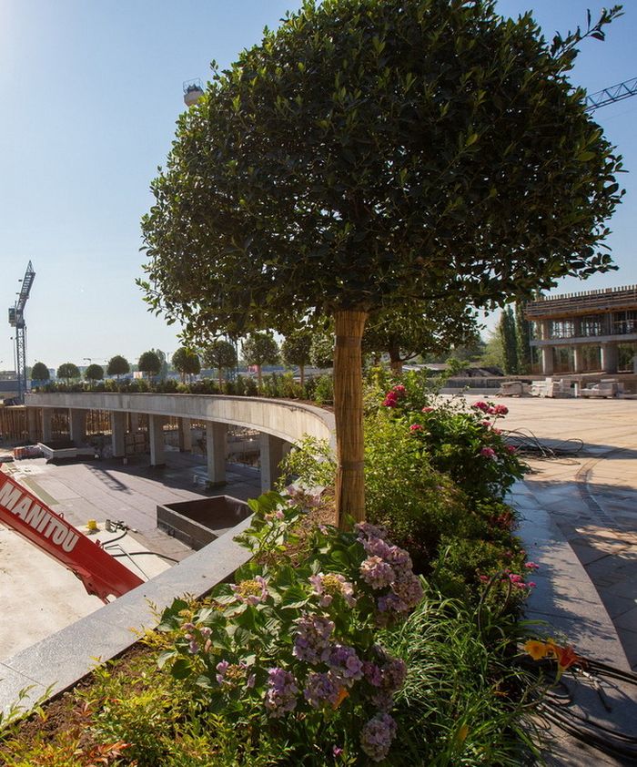 Construcţia ansamblului urbanistic a antrenat peste 370 de firme, iar în șantier au muncit peste 1.000 de persoane. Pentru efectuarea lucrărilor de o asemenea anvergură au fost utilizate 20 de macarale și 18 automacarale, precum și sute de utilaje performante.
