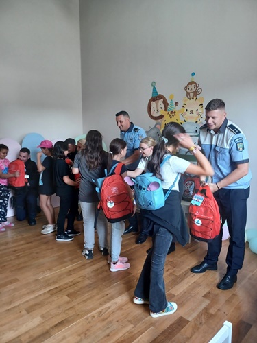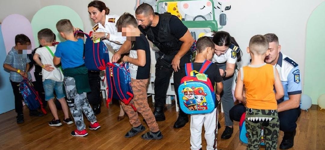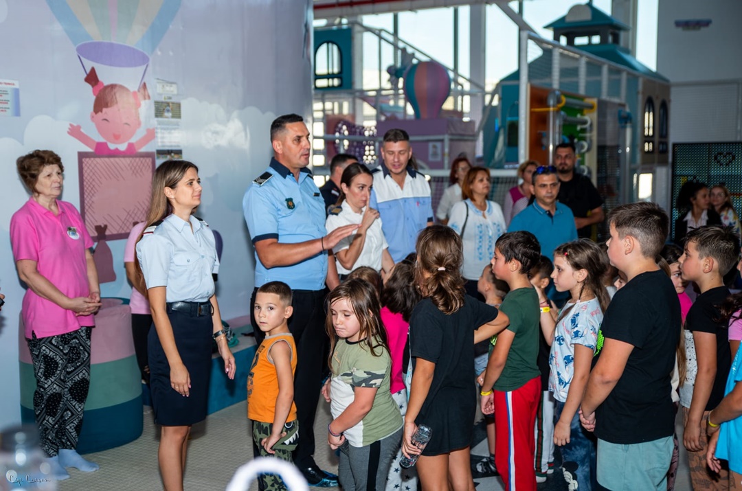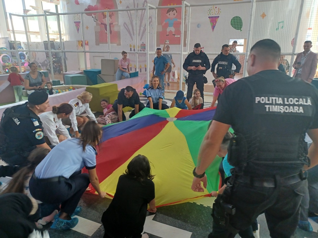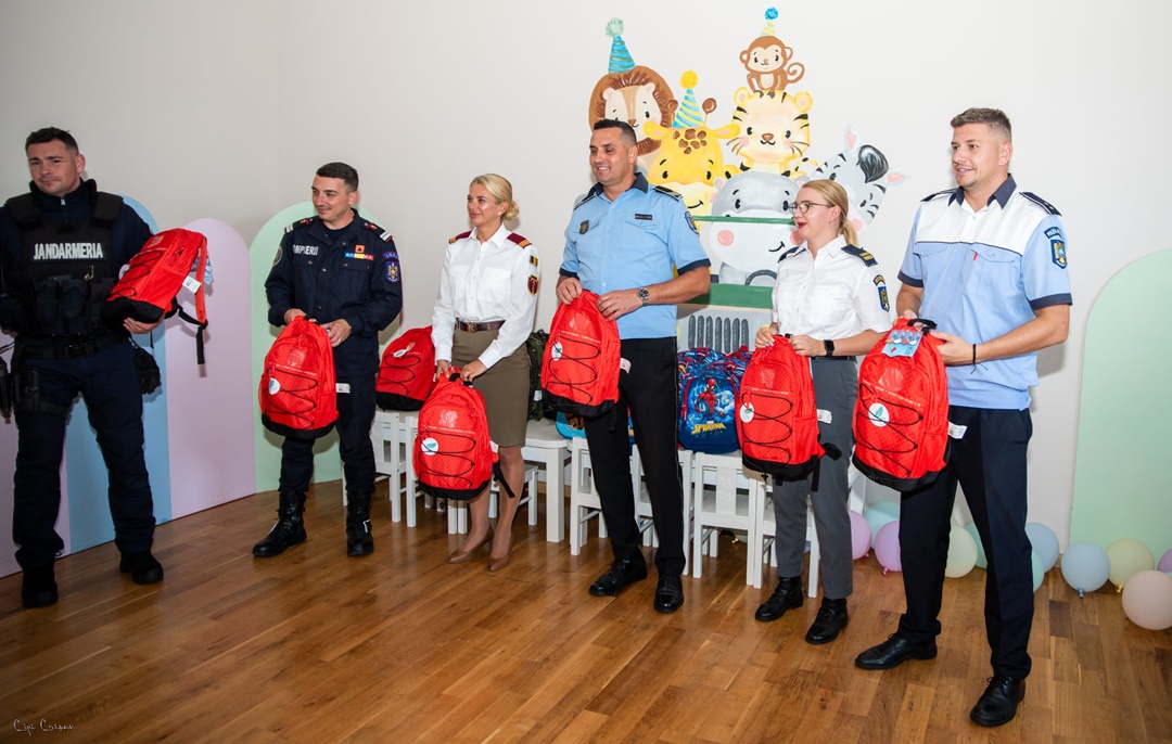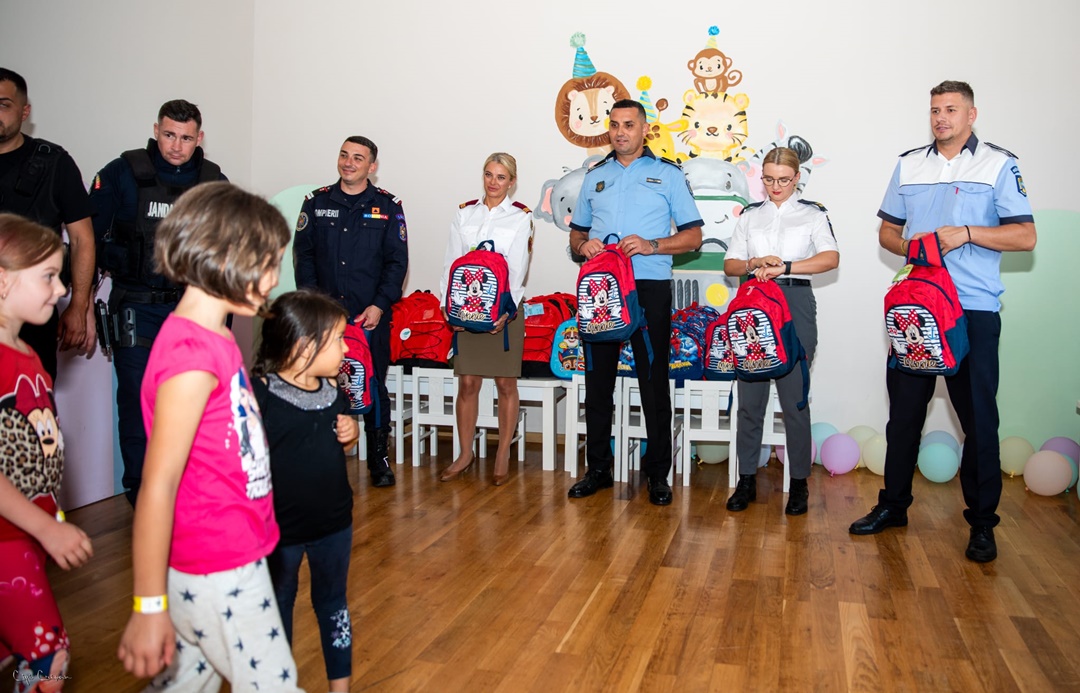 TIMISOARA. Angajati de la Politia Locala Timisoara, Inspectoratul de Politie Judetean Timis, Inspectoratul de Jandarmi Judetean Timis, Inspectoratul Teritorial al Politiei de Frontiera Timisoara, Inspectoratul pentru Situatii de Urgenta Banat, Gruparea de Jandarmi Mobila Timisoara, Spitalul Militar de Urgenta Timisoara, impreuna cu reprezentantii unui loc de joaca din Timisoara au demarat campania umanitara “Back to school for all kids” editia I.