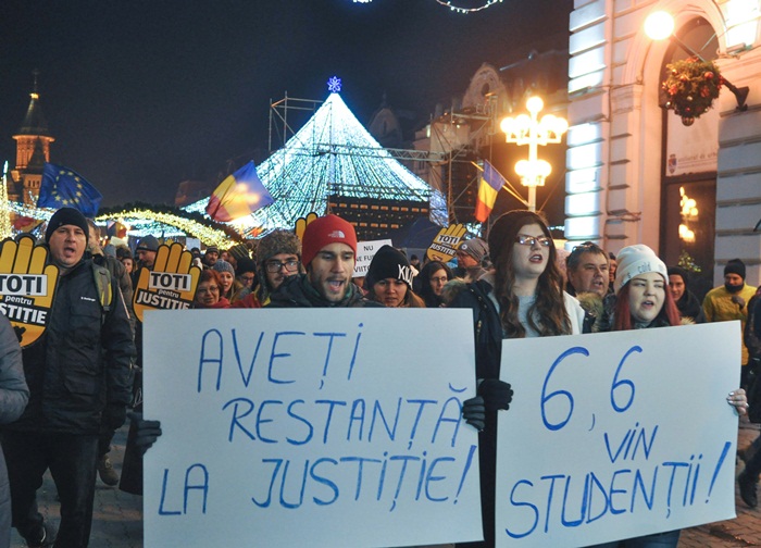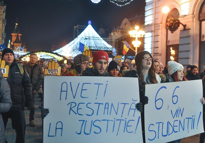 Protestatarii si-au propus ca in jurul orei 20.30 sa porneasca intr-un mars spre Palatul Dicasterial, cel care adaposteste instantele si parchetele din Timisoara.