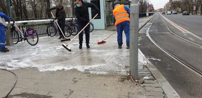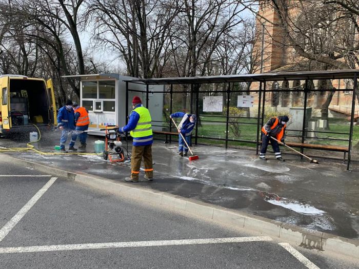 TIMISOARA. Inca de la sfarsitul lunii martie, reprezentantii Societatii de Transport Public Timisoara au inceput sa spele cu detergent si dezinfectant toate statiile, peroanele si trotuarele din vecinatatea statiilor mijloacelor de transport.