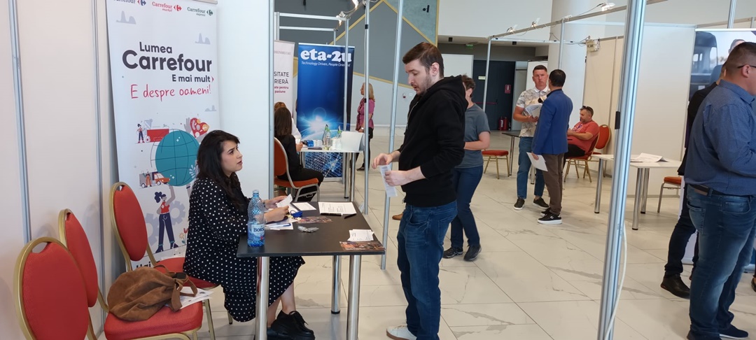 “In primele 2 ore ale bursei am depasit un record. Avem 907 locuri de munca, de la 53 de angajatori, iar in primele 2 ore avem 587 de persoane care si-au lasat CV-ul in vederea incadrarii. Pentru noi inseamna foarte mult, inseamna ca ne vom depasi obiectivul propus. Pentru studii medii avem 824 de locuri de munca, operatori de productie, muncitori necalificati, transport persoane, tamplari, gestionari de depozite. Pe studii superioare avem 83 de locuri de munca vacante, mai putine decat la alte burse si avem arhitectura, cercetare si dezvoltare, ingineri IT din diferite domenii, iar pana la oira 11 avem 1022 persoane participante“, spune Roxana Kassai, director al AJOFM Timis.