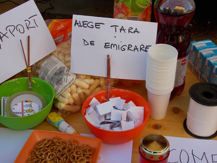 Locatarii au organizat chiar si o loterie a vizelor si au oferita pasapoarte catre alte tari, in timp ce copiii au desenat pe asfalt sau au pictat.