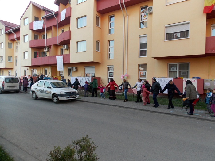 Protestul chiriasilor ANL de la Timisoara s-a incheiat cu crearea unui lant uman in fata blocurilor.