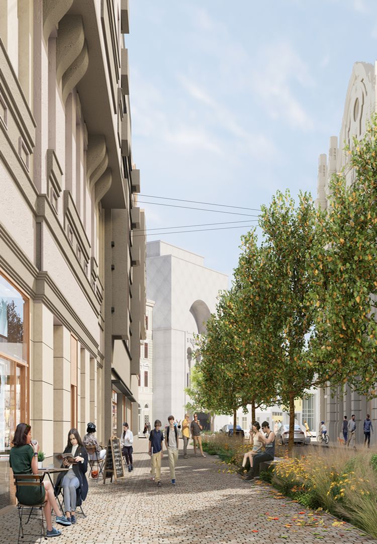 Apar foarte multe lucruri, iar de disparut dispar foarte putine. Am pastrat toate monumentele pe pozitia pe care sunt, am avut foarte mult respect fata de memoria afectiva a oamenilor si fata de toate aceste obiecte, dar ce am adus in plus este un aliniament dublu de copaci, care va crea o zona de umbra atat de binevenita in spatiul pietei. Am creat o zona de circulatie in raport cu fatadele si functiunile publice de la parterul cladirilor ce marginesc piata in asa fel incat, cine are treaba cu comertul sa mearga pe acolo.