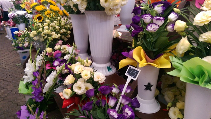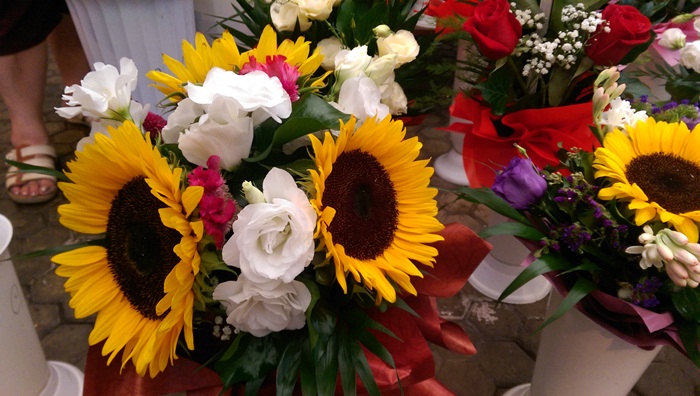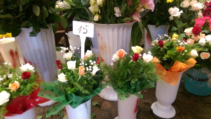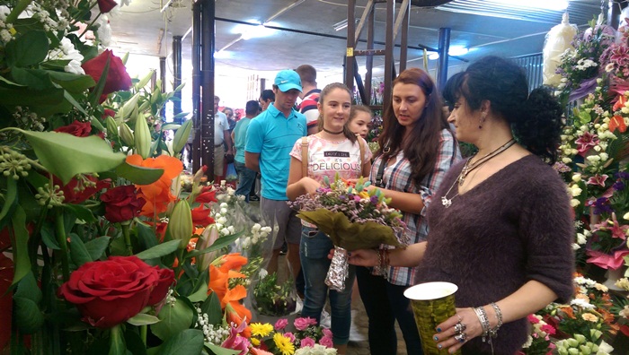 Duminica dupa-amiaza, in Piata 700 misunau parinti cu copii, singuri sau chiar si bunici, in cautarea celui mai frumos buchet de flori. 15 lei au costat cele mai ieftine, insa florarii se lauda ca au vandut si buchete de trandafiri mari cu 50 de lei.
