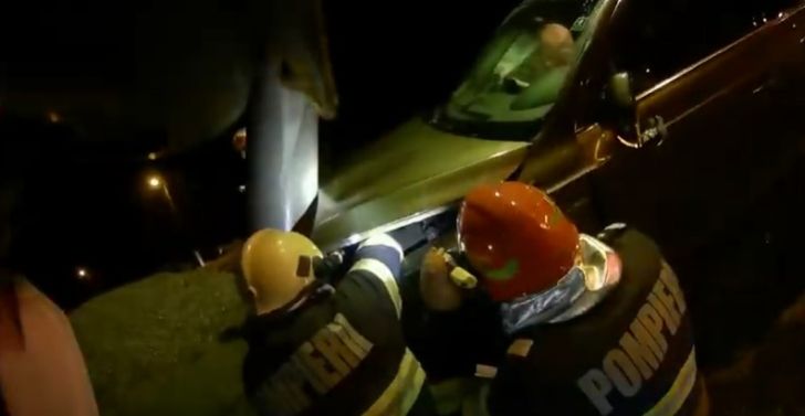 Soferul, care a fost ranit, a fost preluat de medici si dus la spital.