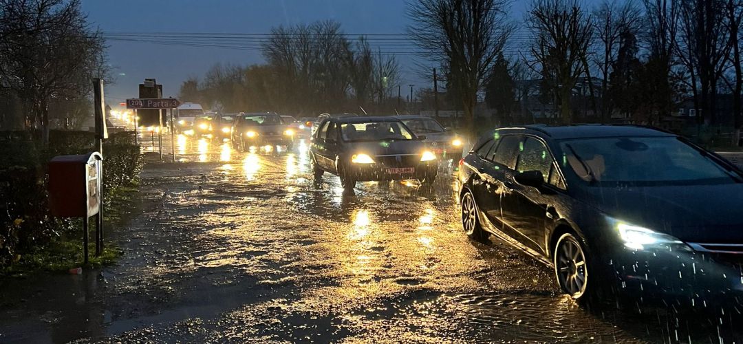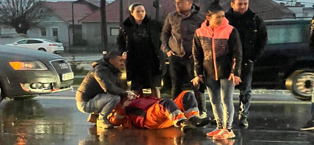 TIMISOARA. Accident de circulatie, joi seara, la Sag. Un pieton care a trecut strada a fost acrosat de o masina.