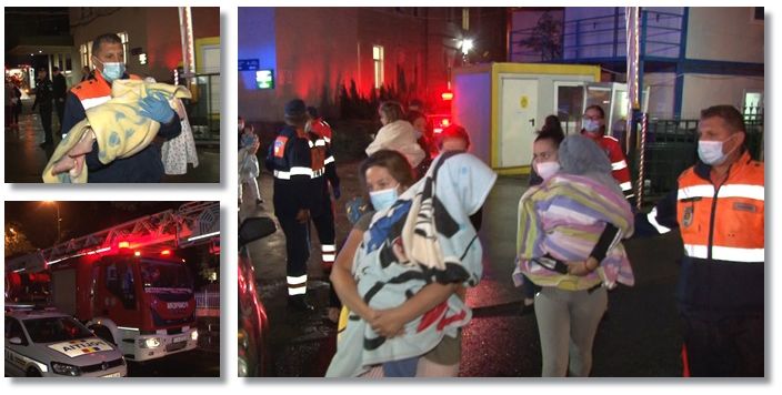 Sub coordonarea sefului ISU Banat Lucian Mihoc, a sefului UPU SMURD dr. Mihai Grecu si a subprefectului de Timis Sorin Ionescu, cu sprijinul medicilor de garda si al asistentelor, 42 de copii internati au fost evacuati de urgenta impreuna cu mamele lor (41). Cu totii erau internati atat in saloanele de la etajul 1, cat si in cele aflate la nivelul 2. Au fost scosi din cladire inveliti in paturi, multi plangand, iar mamele, si ele speriate, se chinuiau sa ii linisteasca.