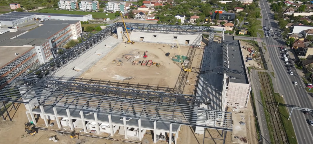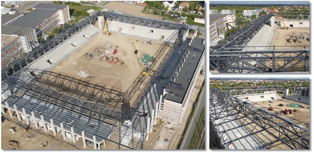 TIMIȘOARA. În întârziere și cu termenul de finalizare amânat până în decembrie, lucrările la stadionul Eroii Timișoarei au ajuns într-o nouă etapă, odată cu montarea structurii acoperișului.