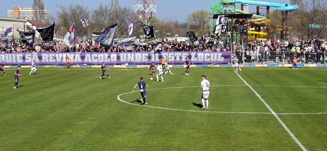 Fotbaliștii lui Dan Alexa au controlat duelul cu Metalurgistul Cugir aproape în totalitate. Prima mare ocazie alb-violetă a venit în minutul 16, cănd șutul lui Marincu de la distanță a mușcat pământul, portarul a respins, mingea a ajuns la Morar, al cărui șut a fost respins de apărare. Trei minute mai târziu a venit si deschiderea scorului. O centrare a lui Țegle l-a găsit în careu pe Ene, care a deviat în plasa pentru 1-0.