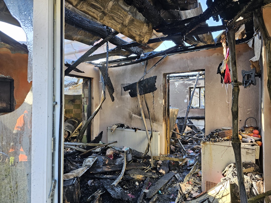 Nu s-au înregistrat victime, familia cu un copil a ieșit la timp din casă.