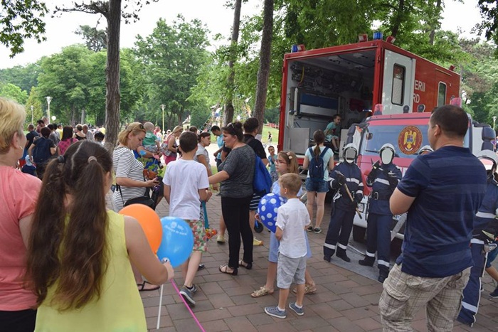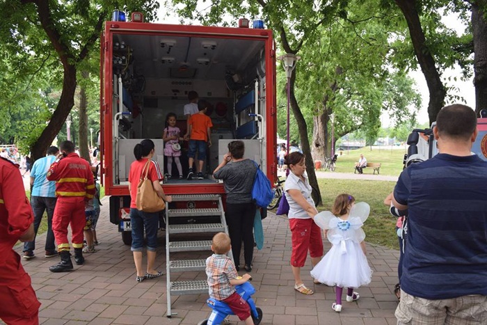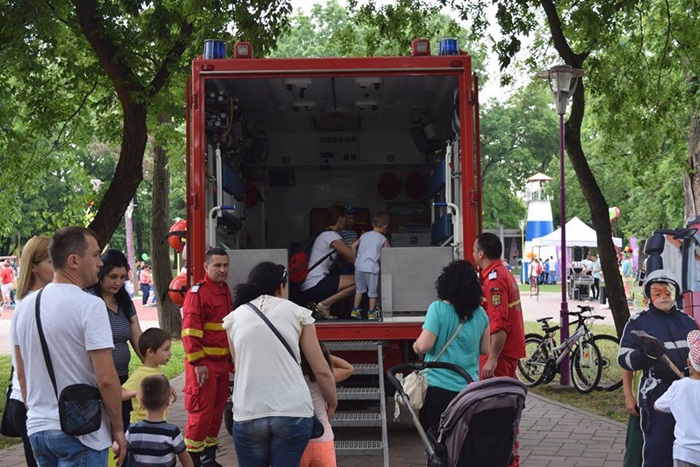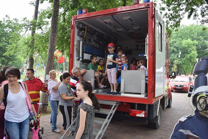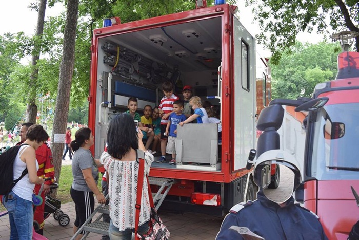 Cateva echipaje din cadrul Inspectoratului pentru Situatii de Urgenta au iesit in parcurile din mai multe orase din Timis pentru a le arata celor mici masinile si tehnica cu care lucreaza in timpul interventiilor. Pompierii au venit in Parcul Copiilor din Timisoara si cu un stand fotografic, si i-au lasat pe cei mici sa urce in masinile de interventie si sa isi faca poze.