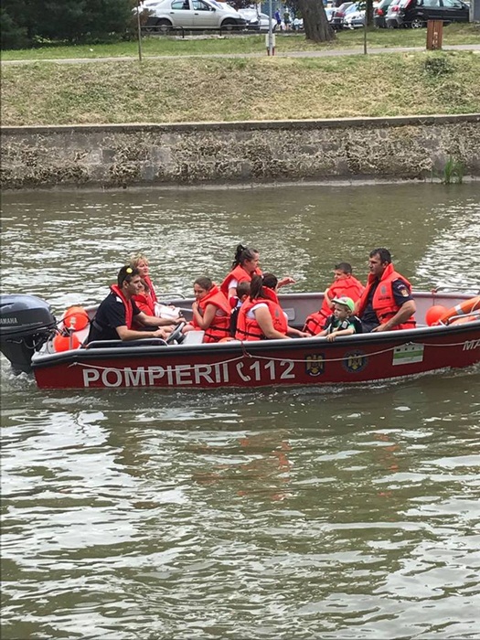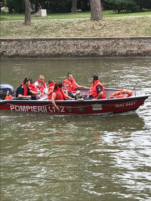 Piticii care au vrut sa fie pompieri pentru o zi au fost si echipati de cadrele ISU Banat, iar cei mai curajosi au urcat si in barci pentru o plimbare supravegheata pe Bega.