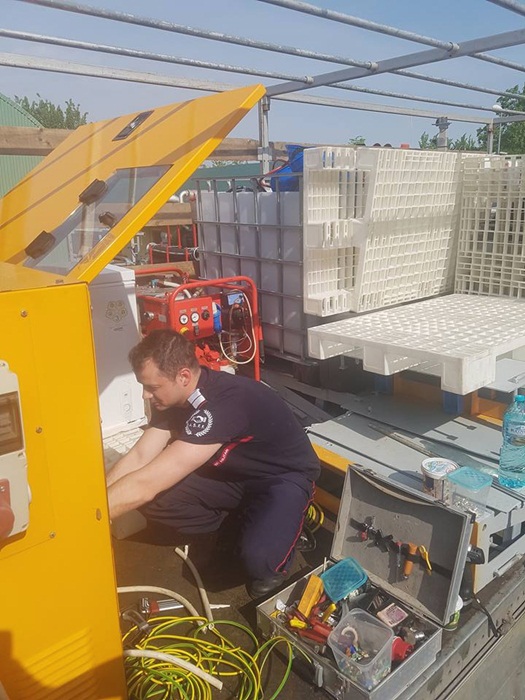 Delegatia timisoreana a plecat de la punctul de lucru din Giroc cu un modul de pompare de capacitate mare, care este format din 10 autospeciale, si o formatie de 25 de pompieri. Pompierii timisoreni duc in Austria doua pompe de mare capacitate care sa ajute la evacuarea apei in cazul inundatiilor.