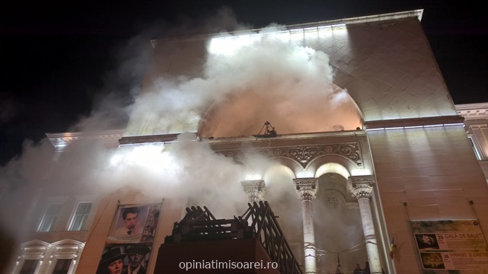 Presupusul incendiu ar fi pornit chiar de sub scena Teatrului National din Timisoara, institutie gazduita de Palatul Culturii. In scenariul gandit de ISU Banat, sute de oameni participa la un spectacol si trebuie salvati din cladirea cuprinsa de fum. Incendiul ameninta sa se propage, asa ca oamenii raman blocati si nu reusesc sa iasa din Opera.