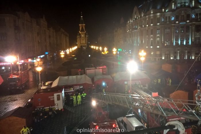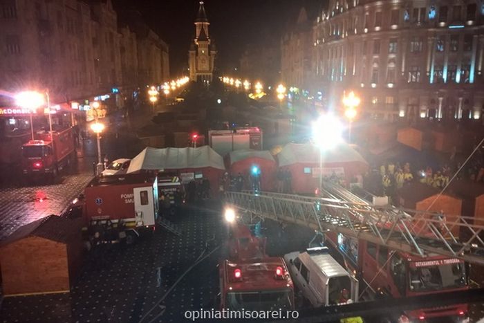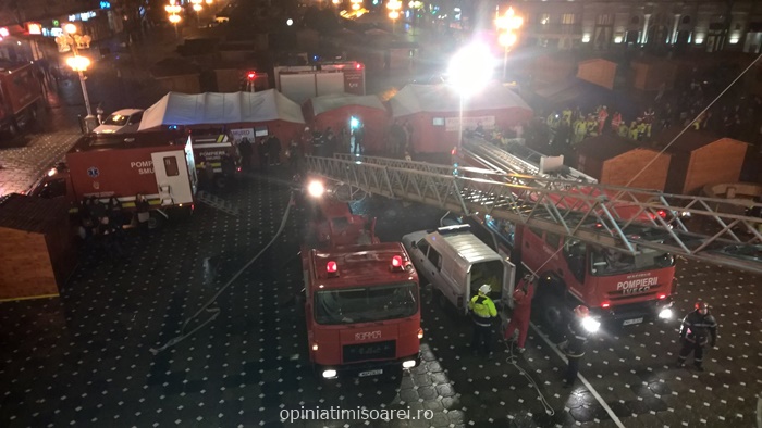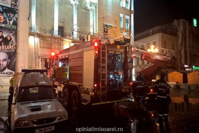 TIMISOARA. Panica in centrul Timisoarei, chiar in Piata Operei. Mai multe echipaje de pompieri au blocat, luni seara, platoul din fata Palatului Culturii, in cadrul unui exercitiu pus la cale de Inspectoratul pentru Situatii de Urgenta Banat.