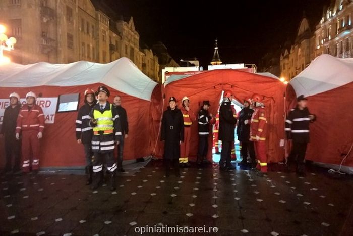 Zeci de ofiteri si mai multe ambulante si autospeciale cu apa si spuma au blocat Piata Operei, demonstrand o adevarata mobilizare de forte. Au fost ajutati si de voluntarii de la Salvo. Specialistii ISU au vrut sa verifice modul de actiune in cazul producerii unui incendiu major la o cladire plina de oameni, pe timp de noapte.