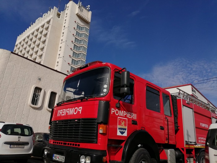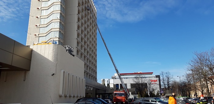 Pompierii au intervenit cu autoscara pana la etajul al XI-lea al hotelului, cu un ofiter si 9 subofiteri de la Detasamentul 2 Timisoara.