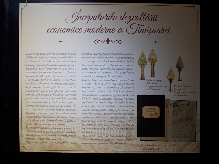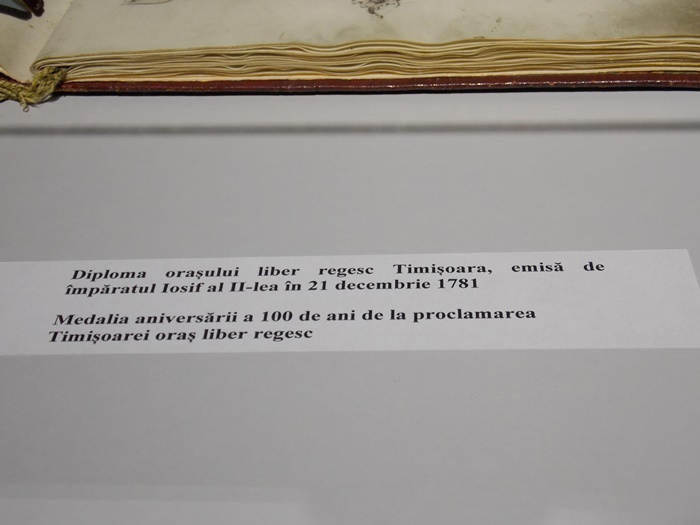 Obiecte din ultimii 300 de ani sunt expuse intr-un spatiu generos. La intrare pe timisoreni ii asteapta unul dintre cele mai importante documente din istoria orasului: Diploma Orasului Liber Regesc Timisoara, emisa de imparatul Iosif al II-lea, in 21 decembrie 1781.
