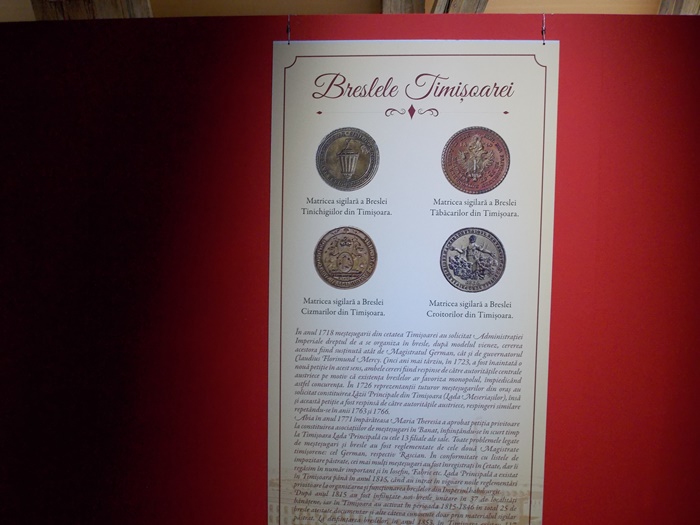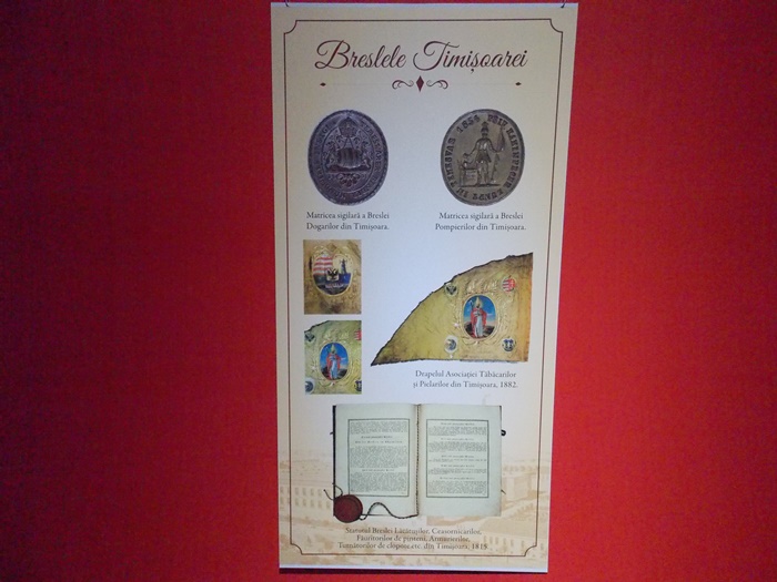 In expozitie si-au gasit loc emblemele breslelor mestesugaresti din Timisoara care dateaza din secolul al XIX-lea, dar si o colectie de medalii, iar intr-unul dintre colturi a fost expus Pomul Breslelor.