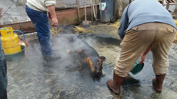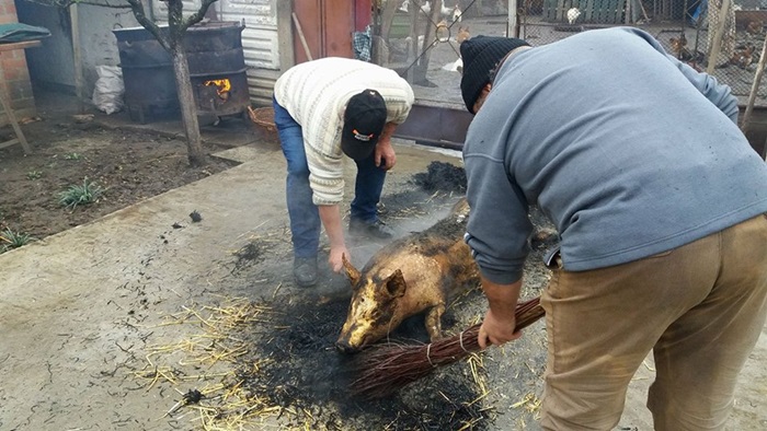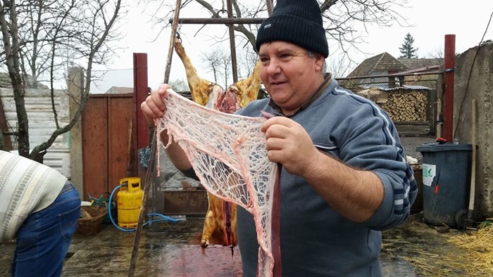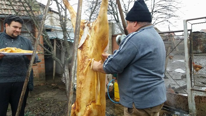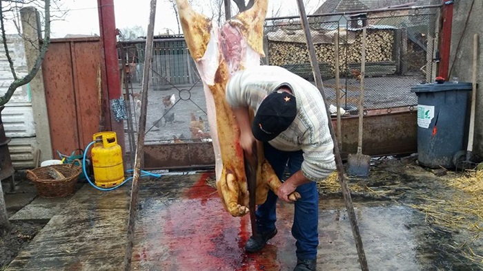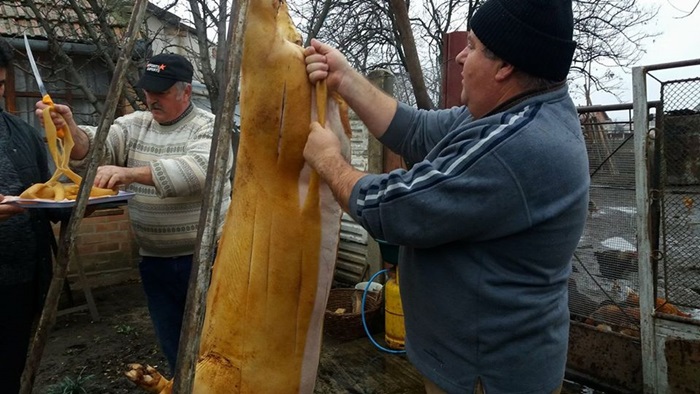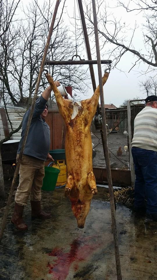 “Zona aceasta a Banatului de pusta, este o zona de interculturalitate, pentru ca aici au trait si nemti, si unguri, si sarbi, si romani de-a lungul timpului si atunci automat noi am imprumut lucruri facute si de unii si de ceilalti. De dimineata am parlit porcul cu paie, pentru ca este mai fraged soricul. Dar in acelasi timp pastram un obicei nemtesc, porcul se va ridica sus pe un scripete pentru curatirea lui, pentru ca e mai igienic. Noi incercam sa pastram cat de cat traditiile, nu doar prin taierea porcului, care este specifica acestui sezon. In mod normal, satenii isi pregateau carnea pentru un an de zile. Ceea ce era frumos si se mai pastreaza doar pe alocuri e prietenia dintre vecini, se adunau la cina vecinii, 20 de persoane erau la masa. Daca astazi erau la mine, maine la vecinul si aaa era si buna intelegere intre vecini”, spune preotul din Comlosu Mare, Cezar Calin Cojocaru.