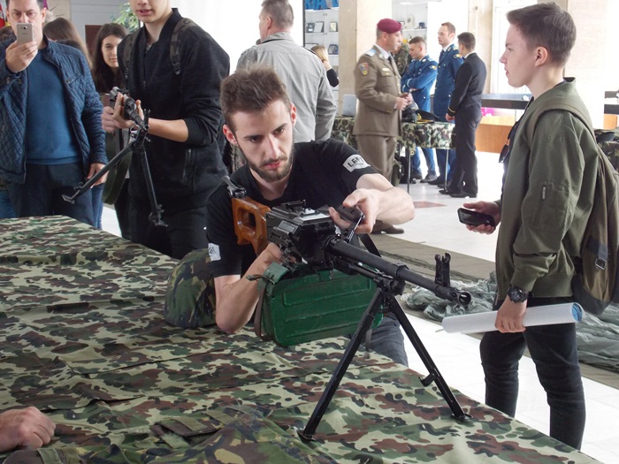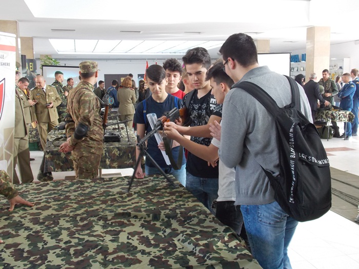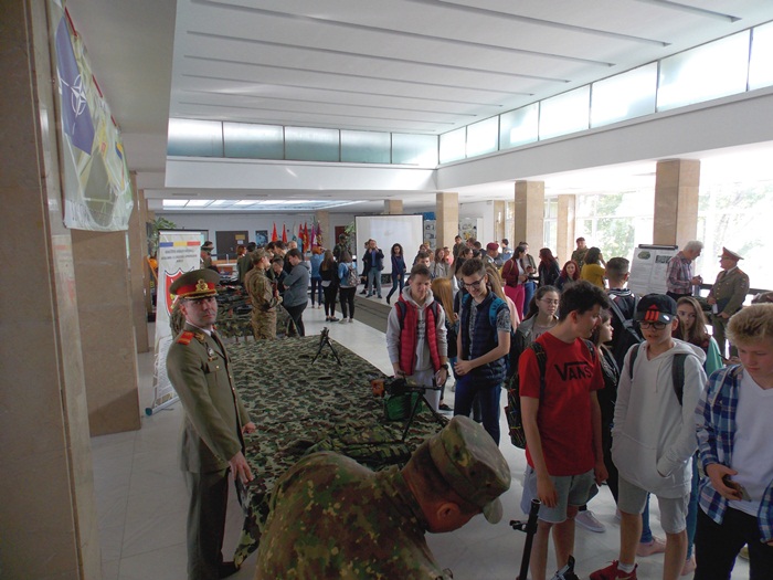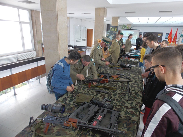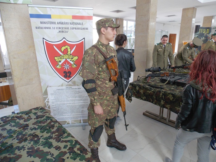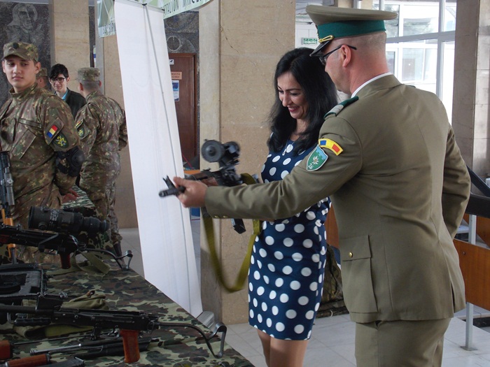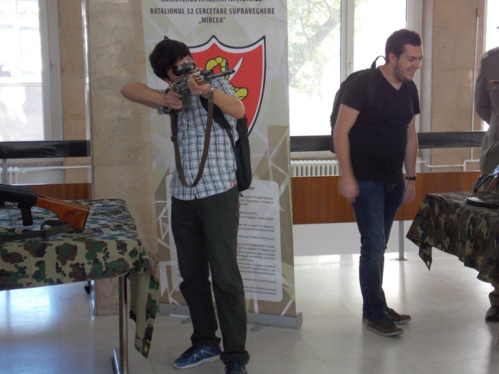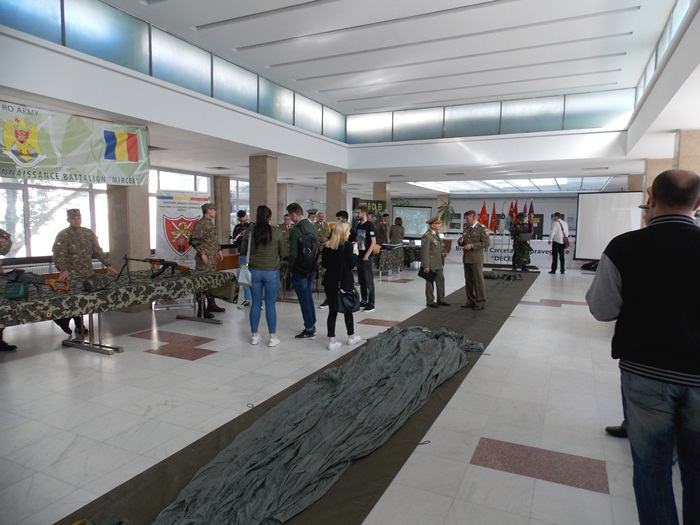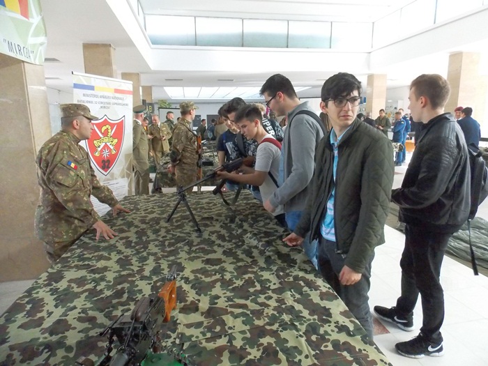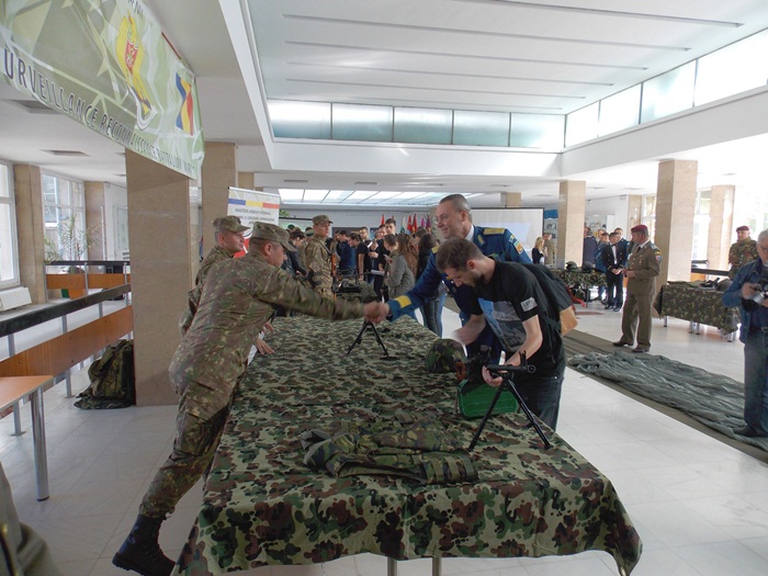 Si daca sala a fost plina, studentii Universitatii de Vest au admirat si expozitia de arme si dotari din holul din fata Aulei Magna. Militarii Brigazii 18 Cercetare Supraveghere „DECEBAL” au fost cei care le-au aratat tinerilor cum se monteaza sau se demonteaza o pusca, cum se ocheste cu arma sau cum se lucreaza cu echipamentul radio.
