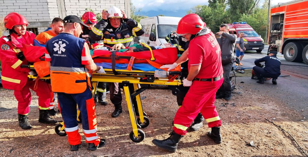“Sositi la fata locului, pompierii au extras soferul care a fost transportat la U.P.U. Petrosani de catre un echipaj al Serviciului de Ambulanta Judetean, iar misiunea salvatorilor a continuat cu operatiunea de descarcerare a celei de-a doua persoane, aflata in interiorul autoturismului. Dupa finalizarea interventiei salvatorilor, barbatul aflat pe locul din dreapta al autoturismului a fost transportat la spital, cu o ambulanta SMURD. Echipajul format din 11 pompieri a intervenit cu o autospeciala de stingere si descarcerare si cu doua ambulante SMURD“, au transmis reprezentantii ISU Hunedoara.