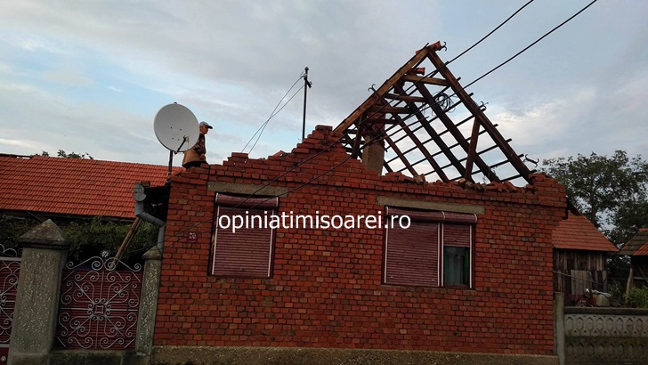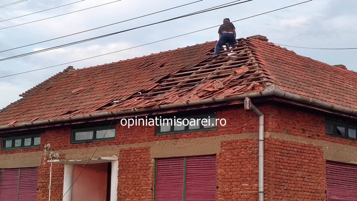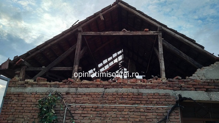 TIMIS. Furtuna a lasat in urma un adevarat dezastru in partea de est a judetului. Vantul puternic a smuls zeci de acoperisuri cu totul de pe case, copaci din radacini, dar a prabusit si turla unei biserici.