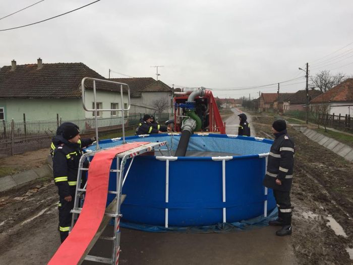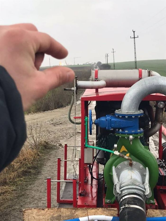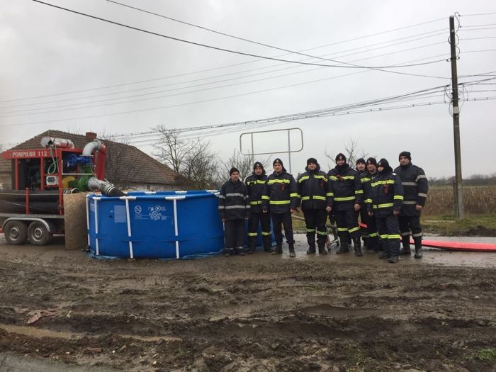 Militarii din Timisoara au dus la Moftinu Mare mijloace de interventie, un autocamion, o motopompa de mare capacitate, doua autospeciale cu apa si spuma si un container logistic, si impreuna cu intreaga echipa fac eforturi uriase sa opreasca valvataia.