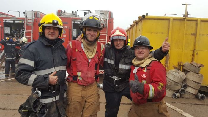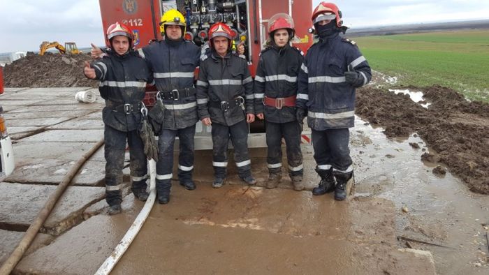 TIMISOARA. De o saptamana, 23 de pompieri din Timis muncesc cot la cot alaturi de colegi din mai multe judete din vestul tarii sa stinga incendiul izbucnit la o sonda de gaz din Satu Mare.