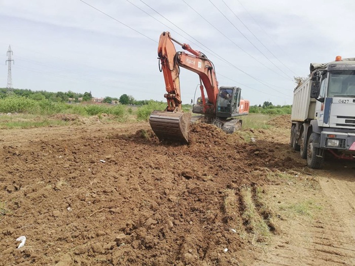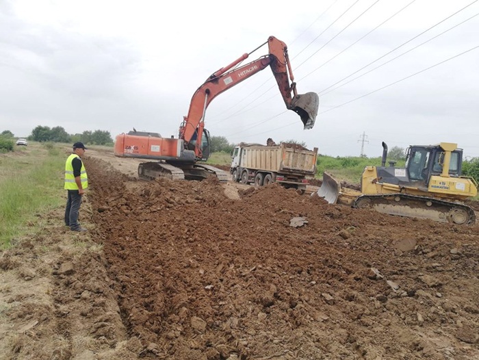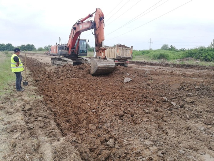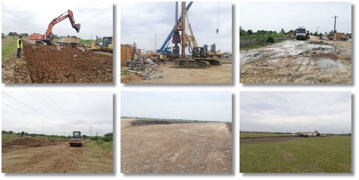 “Lucrarile din ultima saptamana de pe santierul variantei de ocolire Timisoara Sud avanseaza si spre km 0 al proiectului, in zona Utvin. A inceput curatarea terenului pentru decopertarea stratului vegetal pentru formarea culoarului de drum. In acelasi sector, la km 2+380, au inceput sapaturile pentru amenajarea unei podet si s-au facut treceri provizorii peste doua canale de irigatii.