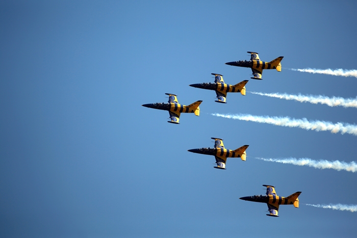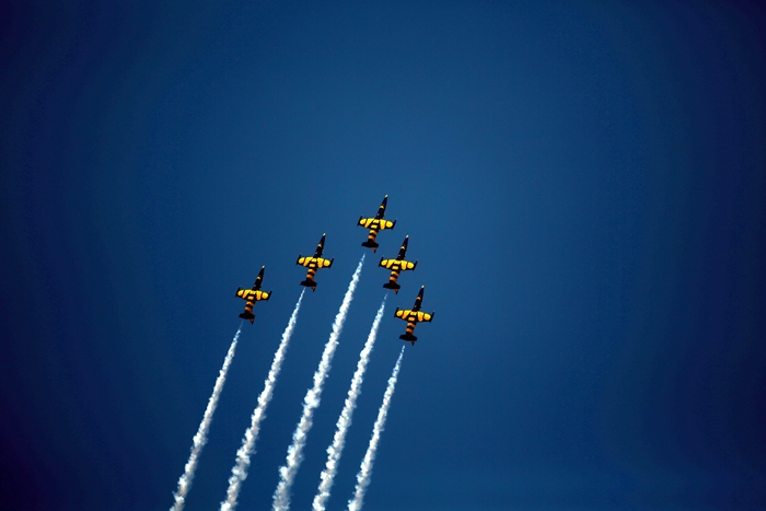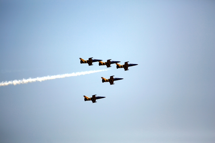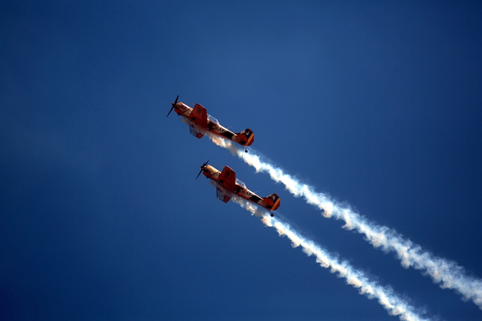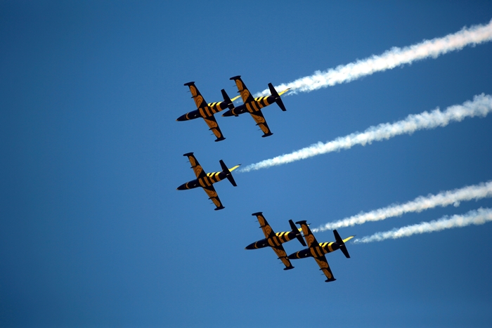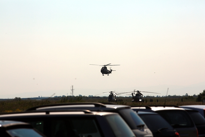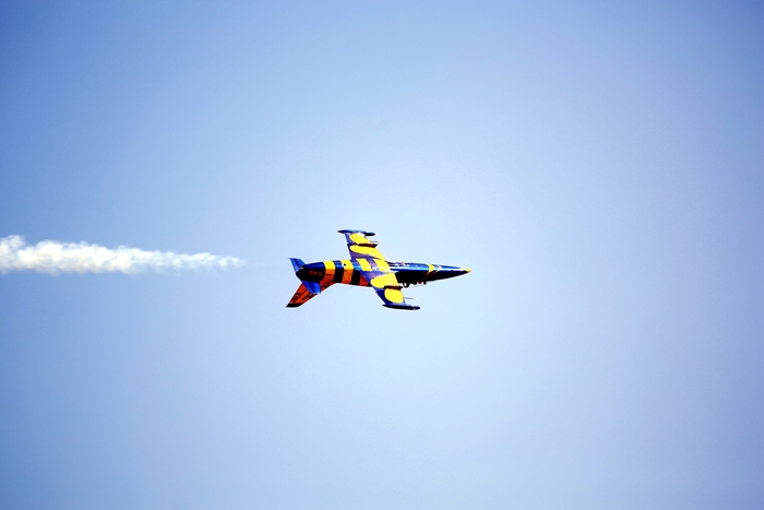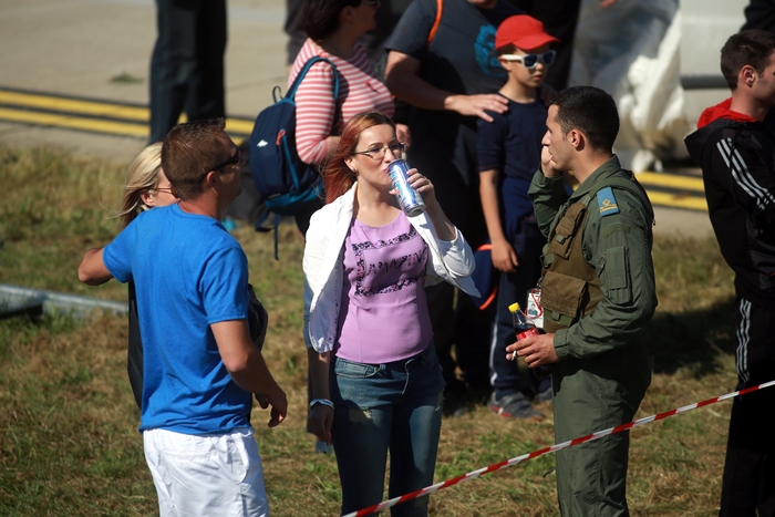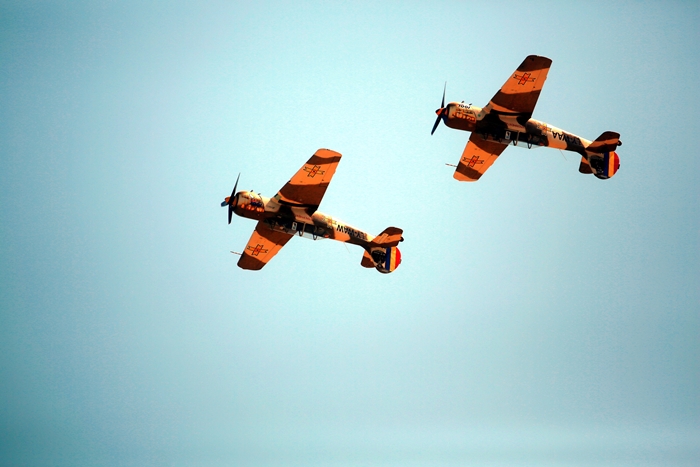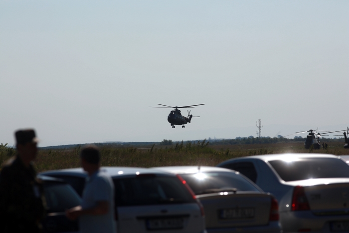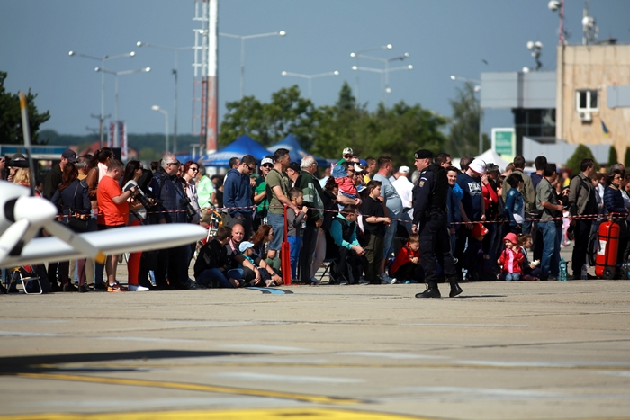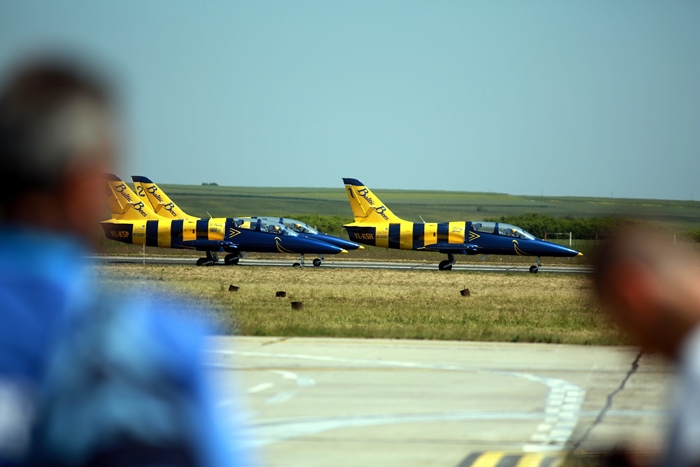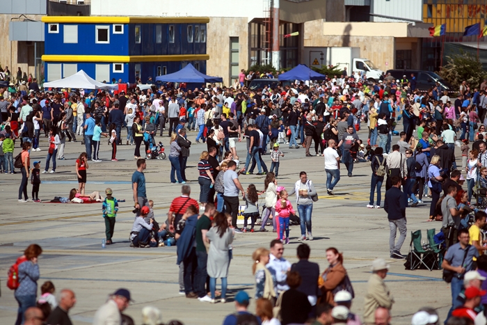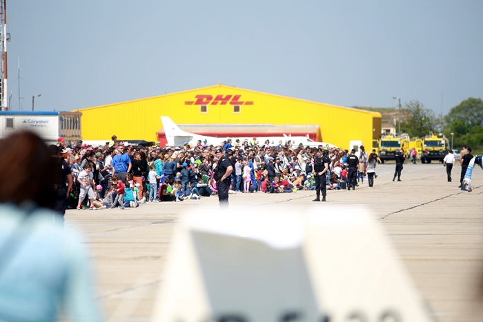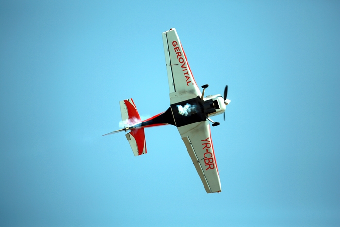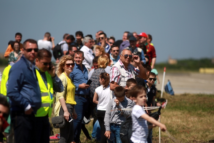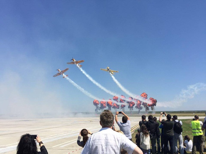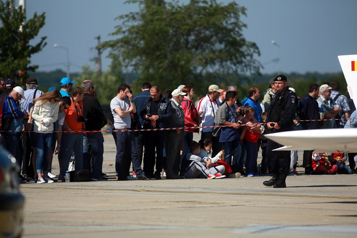 Primii care au intrat in actiune au fost pilotii elicopterelor Fortelor Aeriene Romane care au executat mai multe zboruri uimitoare. Apoi, Iacarii Romaniei au reprezentat escadrila care a lasat cu gura cascata privitorii, dupa o serie de acrobatii si zboruri explozive.