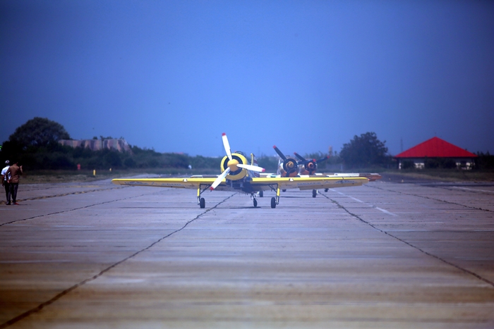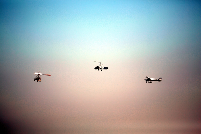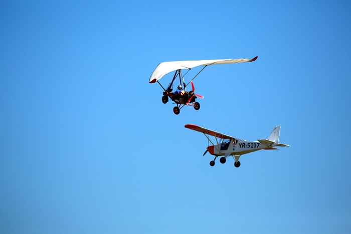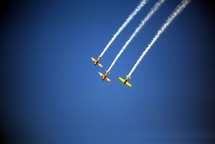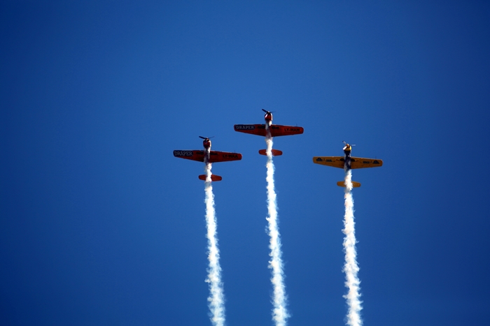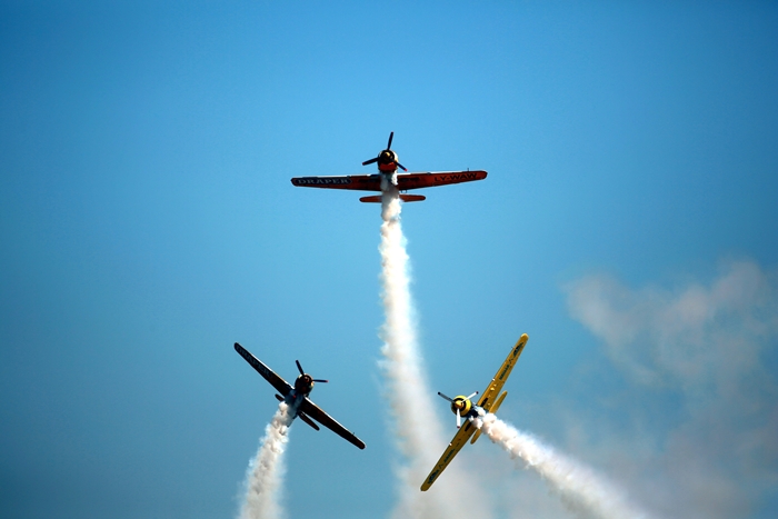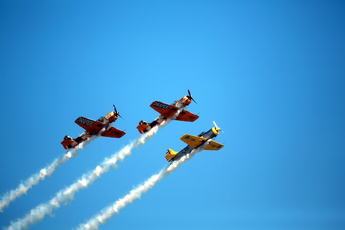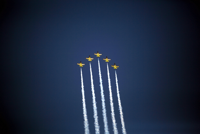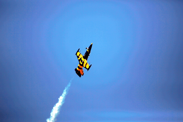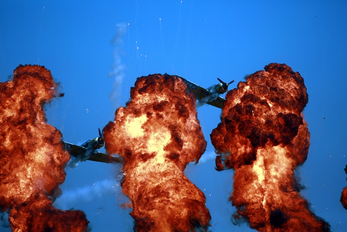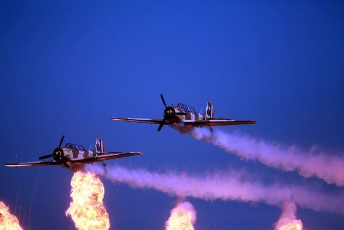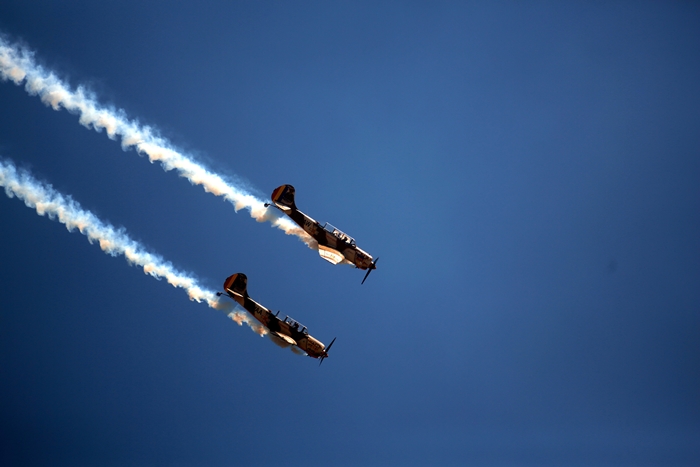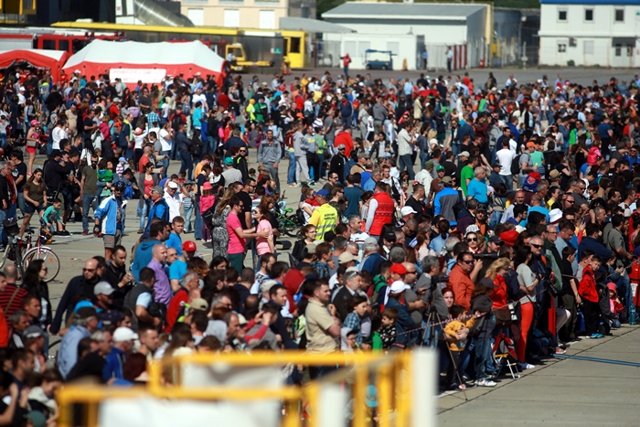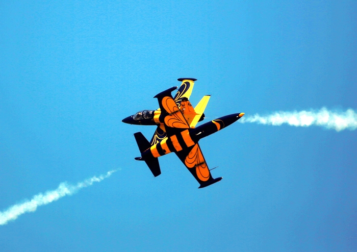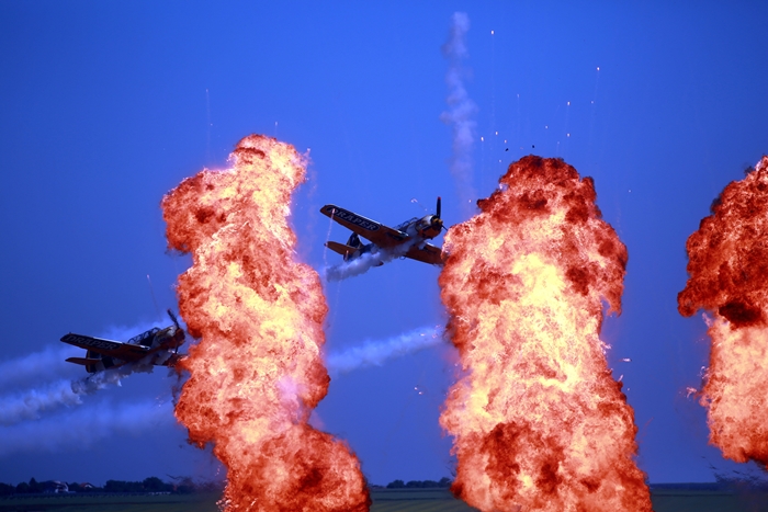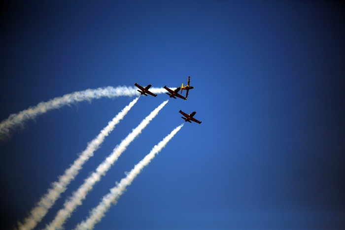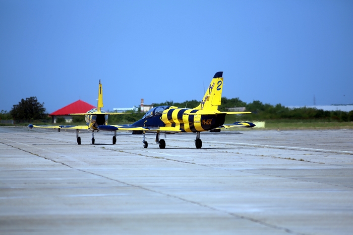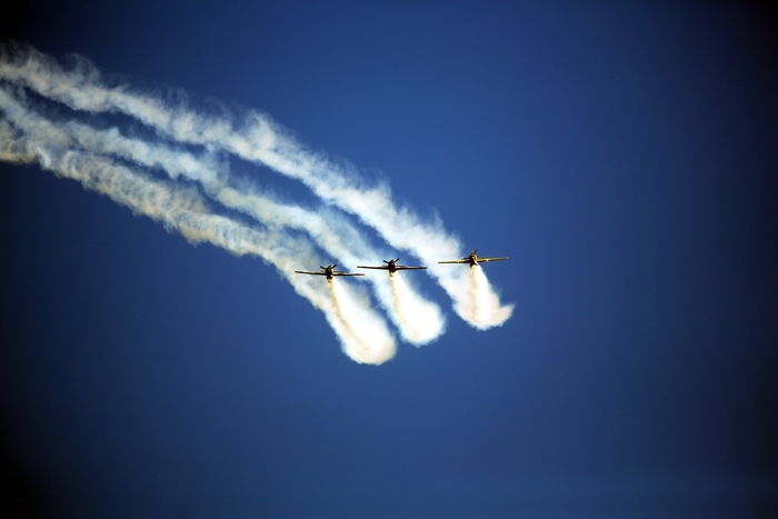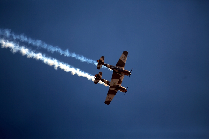 Primii care au intrat in actiune au fost pilotii elicopterelor Fortelor Aeriene Romane care au executat mai multe zboruri uimitoare. Apoi, Iacarii Romaniei au reprezentat escadrila care a lasat cu gura cascata privitorii, dupa o serie de acrobatii si zboruri explozive.