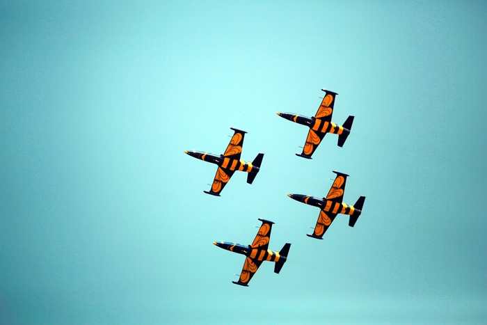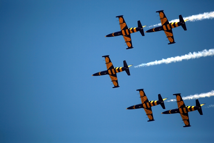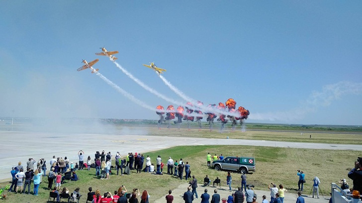 Premiera a fost reprezentata de show-ul oferit de formatia Baltic Bees, din Estonia, aflata pentru prima oara la Timisoara. Pilotii acestei escadrile au zburat in formatie de cinci, in sincronizare perfecta, au desenat pe cer o inima strapunsa de o sageata si au facut si alte acrobatii fascinante. Aeronavele au trecut milimetric unele pe langa altele la o viteza ametitoare.