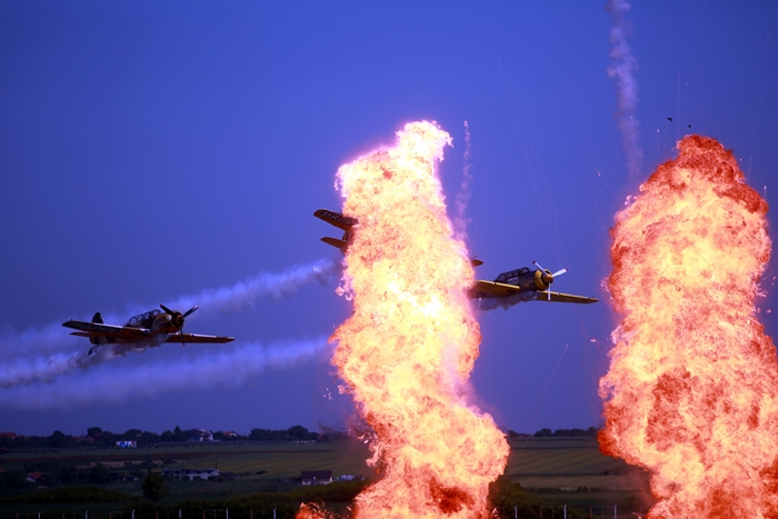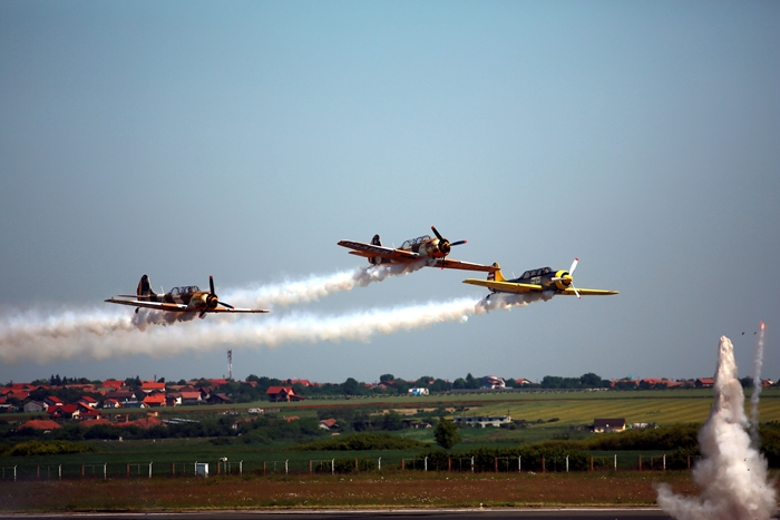 Zbor sincron, simulare de picaje, zbor la joasa inaltime si efecte speciale ca-n filme. De toate au avut parte timisorenii prezenti pe pista aeroportului. Aproape 15.000 de oameni au venit, potrivit organizatorilor, sa ii vada pe maestrii aviatiei romane, dar si pe invitatii din strainatate.