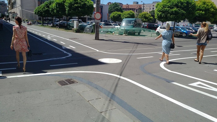 Dupa mai multe balbaieli legate de vopsirea pistei, angajatii primariei i-au dat forma finala, cu mai multe segmente, pe categorii de vehicule, si, in premiera, au amenajat si un sens giratoriu. Inca n-au apucat sa indeparteze indicatoarele rutiere care arata ca biciclistii au interzis pe Marasesti, iar un altul produce confuzie, intrucat precizeaza ca au voie sa circule doar cei cu bicicletele, rolele si skateboardul.