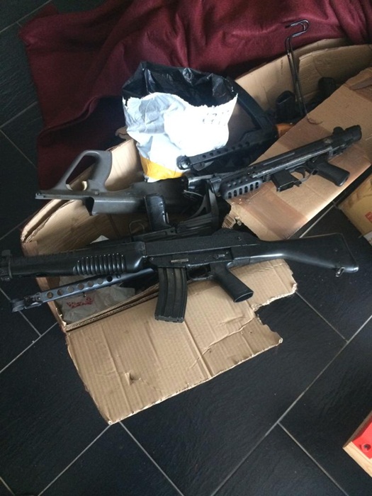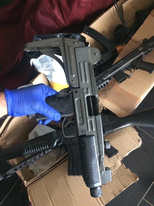 “S-au gasit foarte multe corpuri de arme sau arme cu caracteristici ale genurilor letale. Foarte multe componente si piese destinate confectionarii de arme. S-au gasit foarte multe elemente destinate confectionarii de explozibil in mod artizanal. Este vorba atat de arme confectionate artizanal prin imprimare cu ajutorul imprimantelor 3D, pe care le detine, cat si de mai multe arme de serie provenite din contrabanda, metalice, adevarate“, precizeaza ofiterii Serviciului Arme Explozibili si Substante periculoase din cadrul IPJ Timis.