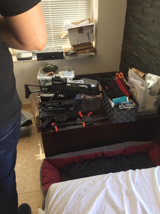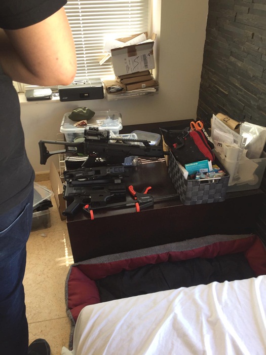 Cu exceptia celor doua arme de asalt, ce puteau fi folosite in orice moment, celelalte arme, realizate cu ajutorul imprimantelor 3D, aveau nevoie de tevi si percutor pentru a fi folosite. Prototipurile realizate cu ajutorul zecilor de imprimante descoperite in casa erau cele ale unor arme din dotarea armatelor israeliana, celebrele Uzi, sau cehesti, Scorpion.