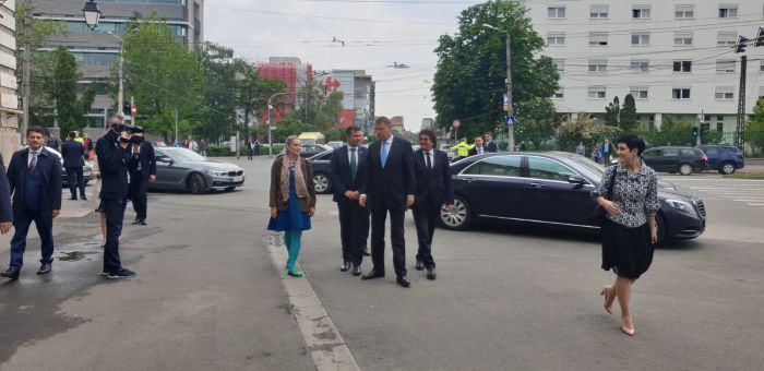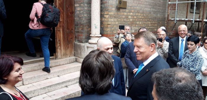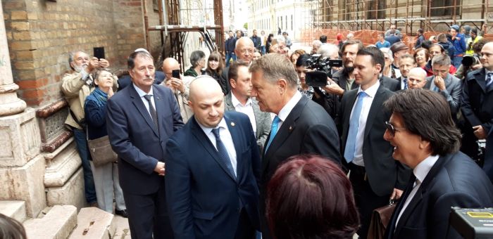 TIMISOARA. Presedintele Romaniei Klaus Iohannis si-a continuat programul de vineri la Timisoara cu o vizita la Sinagoga din cetate, unde a venit de la o dezbatere sustinuta la Universitatea de Vest.