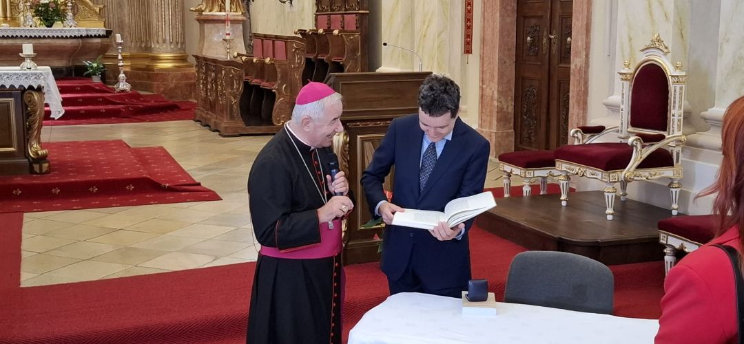 În jurul orei 11.00, șeful statului a mers în vizită la Domul Catolic din Piața Unirii, unde a fost primit de către Mons. Jozsef Csaba Pal, episcop de Timișoara, care i-a daruit Cartea Sfantului Gerard de Cenad si o moneda.